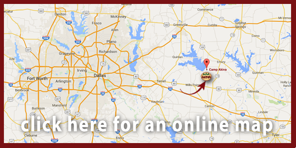 Camp Akiva is a Christian camp located in East Texas, close to Lake Tawakoni and only a one-hour drive from Dallas. For more information, email [email protected] or call 903-598-2497. Click here for a PDF version of directions.